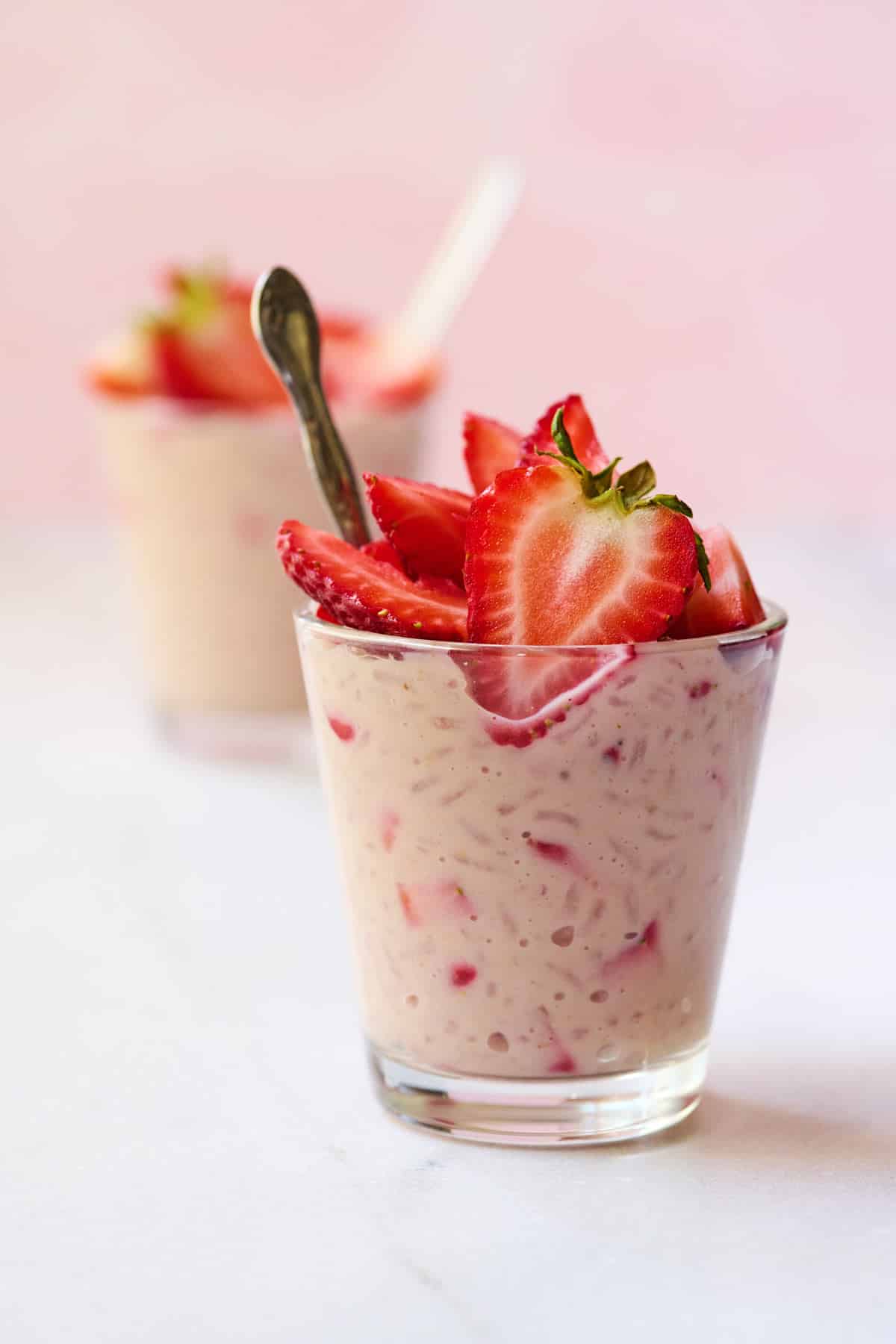 Arroz con leche is Mexico’s version of rice pudding. Traditionally it’s flavored with cinnamon and raisins, but this strawberry arroz con leche is going to change the way you view rice pudding forever. Tangy strawberries offer the perfect contrast to the sweetness of the milk plumped rice.